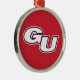This logo features the bold, stylized letters "GU," which stand for Gonzaga University. The letters are outlined with a striking red and navy blue border that adds depth and dimension to the design. The clean and modern font style emphasizes the school's strong athletic identity and academic pride. The combination of red, white, and navy blue reflects Gonzaga’s official colors, creating a powerful and recognizable symbol of the university's spirit and tradition.