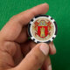 Spanish surname Gonzalez historical arms set on a mottled parchment style background. The reverse of the chip has the symbols for the four suits of cards; a black spade, a red heart, a red diamond, and a black club on the same parchment style background.