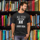 "All you need is a good book" says a funny phrase on black T-shirts for men. Alma Wad's text design is bold. Excellent for book lovers, librarians, and teachers.