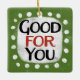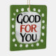 "Good For You" is a fun text design with a white accent shape surrounded by white whimsical textured dots.
