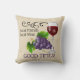 This whimsical throw pillow is great for any wine lover. The design features a glass of wine and grapes, with text that reads "Good Friends Good Wine GOOD TIMES!" Background color can changed and you can also personalize the text.