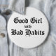 Pin your playful rebellion with this quirky Good Girl with Bad Habits Button Pin, the tiny talisman for every sassy soul navigating life's sweet contradictions. Crafted from durable metal with a glossy white enamel finish and bold black gothic lettering—"Good Girl with Bad Habits"—this 2.25-inch round badge adds instant edge to your tote bag, jacket lapel, or corkboard manifesto. It's the perfect accessory for festival-goers, coffee addicts with a wild streak, or anyone who loves a wink of mischief in their daily grind, blending vintage charm with modern attitude.Easy to attach with a secure safety pin backing, waterproof for worry-free wear, and packaged ready for gifting—ideal for stocking stuffers or self-love surprises. Collect them, stack them, or let this button spark your next bold move; it's more than a pin, it's a badge of unapologetic fun.