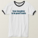 The product was as advertised. The message is succinct and is an eye-catcher. This shirt gets a heap of feedback from onlookers. Most ask you to stand still while they finish reading the definition. They then either give you the thumbs-up or nod any walk away. Either way, its a real conversation starter and so far, no one has disagreed enough with the print to verbalize. The material is fairly light, but the print is stable enough to withstand washes and some activity. A fair deal. Readable and durable.