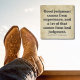 Set your drink on this Western coaster featuring insightful words: 'Good judgment comes from experience, and a lot of that comes from bad judgment.' Embrace the wisdom that mistakes are part of the journey, shaping us into wiser individuals through lessons learned.