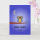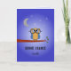 A Good Luck card in french, showing an owl wearing over-sized spectacles and sitting on the branch of a tree against a night sky. The greeting is "BONNE CHANCE" or you can change this to suit, and you can add the name or additional text you need. Inside, the crescent moon and stars are shown on the left, and on the right is a personal message on a pale blue background. This too can be customized: "Bon courage pour les examens". (="Best of luck for the exams.")