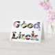 This fun Good Luck card would suit the cat lovers in your life. It features the words "Good Luck" in a striking candystripe pattern plus three lucky black cats and two stripey cat's paws for extra luck! You can customize the card by adding your own message inside.