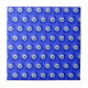 Many little evil eye charms in a repeating pattern with cobalt blue background