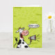 "Good Luck" cow with a bullhorn greeting card with on the background "good luck" spelled in many different languages.
