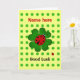 Personalize this card inside and out: Add a name on the front, and personalize the message inside (or you can use the ready-supplied text "Hoping everything goes well"). Lucky ladybirds (ladybugs) and four-leaf clovers are the inspiration for this graphic design. A large red ladybird with six black spots forms the centrepiece, and there is another tiny ladybird hidden in the four-leaf clovers of the patterned background.