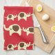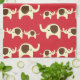 Red good luck kawaii nature / animal pattern of elephants cute elephant kitchen towel.