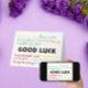 A fun design that says Good Luck in languages like Dutch, German and Italian! Done in a variety of colors like red, green, blue, yellow and purple.