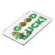 A funny Leprechaun in a green suit with a red beard and a gold coin in his hand wishes you good luck!