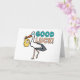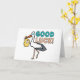 Good Luck IVF design features a stork holding the traditional baby parcel with address label and stamp plus large Good Luck lettering in blue and pink. A fun way to send best wishes to a friend entering the IVF process.