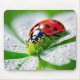 Close-up of a ladybug on green four-leaf clover with raindrops