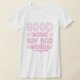The material is a great quality that is hard to find with most tee shirts. Fabric was not see-through or thin at all, but was also very soft and comfortable. The shirt description states that it runs a little small, so I sized up one size for a perfect fit! I would definitely buy this type of tee shirt again because I love the fit and high quality fabric that I cannot find anywhere else. The printing was perfect and just as pictured. Loved the cute quote and really enjoy the tee in both the quality and design. I love quirky typography designs and funny quotes and I am extremely pleased with the overall quality and value I get at Zazzle!
