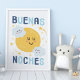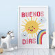 Buenos dias! Buenas noches! Hang this happy nursery art in your new baby or kid's room. Sunshine, clouds, night time moon, stars and rainbows will shine brightly. in any bilingual and Spanish speaking home. Perfect for boy, girl and gender neutral themed nurseries.