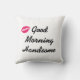 Bright pink lips and "Good Morning Handsome" decorate this white pillow, making it the perfect accent for the bedroom or a cute gift for him on Valentine's Day or his birthday.