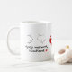 Wake your Valentine up with a kiss and a mug of coffee with this great design. A talking heads line art drawing of a couple has text that says "good morning, handsome" and is finished off with a loving kiss. You can personalize the message, if you like.
