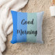Cool blue and light green stripes pattern and a customizable text saying: Good Morning. Fits a cheerful marine style.