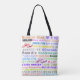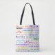 This trendy and uplifting tote bag features the phrase "Good Morning" in multiple languages, arranged in a stylish and artistic layout. Perfect for carrying everyday essentials with a positive vibe!