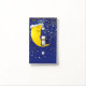 This light switch cover is shown in a deep blue background color with gold stars and a cute good night moon art print.