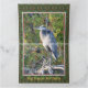 Blue heron happy birthday card, text can be personalized to suit any person or any occasion. Nature inspired designed with bird and cedar patterned background, accented in bard red, and lime green.