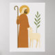 Christian minimalist artwork of the Good Shepherd holding a staff and standing with a lamb. A peaceful reminder of God’s guidance and care.