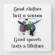 Good clothes last a season, good speech lasts a lifetime, vintage school book artwork from the 1920's of a woman teacher with two children. This nostalgic saying teaches the importance of English grammar.