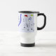 A great travel mug for teachers... unique saying for busy teachers! Three stick figures on a blue background two in caps of red and green and one with a blue head band. The saying can be changed as desired.