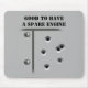 Good to Have a Spare Engine (in the P-38). Vintage black stencil lettering on bullet-ridden factory aluminum P-38 nacelle.