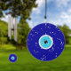 The artwork features a playful design with a blue evil eye amulet surrounded by water droplets. In many cultures, blue eye amulets are thought to protect against evil and ward off negativity. The blend of calming blue tones and the symbolism of the amulet creates a beautiful wind charm for any space. Add this protective good luck charm to your space for a touch of inspiration.