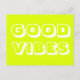 Good Vibes, Best Wishes, Good Luck, chartreuse green neon white postcard