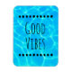 Magnet with the text: good vibes. Designed with a photograph of clear blue pool water, with shimmering reflections.