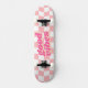 Good Vibes Girly Pastel Pink White Checker Pattern Skateboard