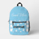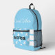 Stylish blue backpack featuring a positive "Good Vibes" script and bold name monogram on the front pocket. Perfect for school, work, or everyday use.