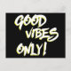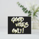 Let everyone around you know that the energy field around you is only conductive to good vibes and good vibes only. This design features those very words in a fun yet grungy text.