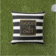 Good Vibes Only Modern Black and White Stripe Gold Outdoor Pillow