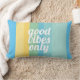 This custom quote pillow good vibes only in colorful stripes modern chic bold design is available for dorm or home decor. Art copyright Ann Powell all rights reserved.