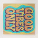 Fun quote text groovy 70s style typography with text good vibes only design.