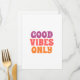 A vibrant and uplifting typography design featuring the phrase “Good Vibes Only” in warm, cheerful tones. Perfect for adding positivity and energy to your space—ideal for home decor, offices, or as a feel-good gift.