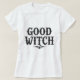 Celebrate Halloween in style with this custom “Good Witch” typography shirt, which can be personalized with your choice of Good, Bad, or Other Witch text. Features a black scroll accent design.