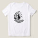 Good Witch Vibes Modern Halloween Moon Script T-Shirt features a silhouette of a witch on a broomstick flying in front of a crescent moon and stars with the text "Good Witch Vibes" in modern calligraphy script. Perfect for trick, Halloween, birthday parties, gifts and more. Designed by Evco Holidays www.zazzle.com/store/evcoholidays