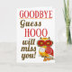 'Hooo' will miss this fabulous bright and funny goodbye owl card! This red and brown farewell greeting card is perfect for colleagues or friends leaving for a new adventure. Whether it is a vacation, retirement or a new job, wish them well and let them know who'll miss them with this great card.