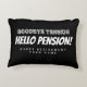 Goodbye tension hello pension funny retirement Accent Pillow. Custom color pillow with humorous quote and personalized name. Black and white bold typography design. Fun gift idea for retiring friends and family. Create your own unique present for coworker, colleague, boss, employee, husband, wife, best friend, corporate worker, manager, coach, teacher, nurse etc. Great for someone with a stressful job or hard profession. Double sided print.