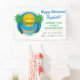 Tropical Beach Palm Tree Goodbye Tension Hello Pension Party Banner. Festival and funny decor for retirement parties!