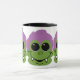 Adorable smiling goblin has green skin, funky purple hair, fangs and big sweety eyes. A fun gift for Halloween or every day.