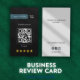 Inviting your clients to leave a review of your small business or the services you provide, this business card template enables you to add a QR code linked to Google Reviews, your social media usernames, business name, and customizable text. Edit your details, incorporate the social media icons relevant to your business, and personalize the text to suit your needs. Add your logo to this modern design, empowering your customers to rate your business and leave 5-star reviews.