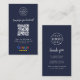 A simple custom navy blue business card, order insert enclosure card or visiting handout card, in a modern minimalist style, designed to feature a scannable QR code that links directly to your Google Reviews page. This versatile template can be personalized with your company logo, graphic, or photo, along with your QR code and a custom message that encourages customers to share feedback. The review platform logo can also be swapped for Yelp, TripAdvisor, Facebook, or any other site to create a bespoke and professional design that suits your business. Perfect for cafes, salons, boutiques, offices, and service-based brands, this clean display helps boost engagement and grow your reputation. Tip: Use the free GatherUp Review URL Generator to create a direct link to your review page before generating your QR code.