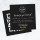 A simple custom black square business card, order insert enclosure card or visiting handout card, in a modern minimalist style, designed to feature a scannable QR code that links directly to your Google Reviews page. This versatile template can be personalized with your company logo, graphic, or photo, along with your QR code and a custom message that encourages customers to share feedback. The review platform logo can also be swapped for Yelp, TripAdvisor, Facebook, or any other site to create a bespoke and professional design that suits your business. Perfect for cafes, salons, boutiques, offices, and service-based brands, this clean display helps boost engagement and grow your reputation. Tip: Use the free GatherUp Review URL Generator to create a direct link to your review page before generating your QR code.