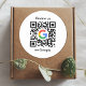 A simple custom white round sticker or packaging seal label in a modern minimalist style, designed to feature a scannable QR code that links directly to your Google Reviews page. This versatile template can be personalized with your company logo, graphic, or photo, along with your QR code and a custom message that encourages customers to share feedback. The review platform logo can also be swapped for Yelp, TripAdvisor, Facebook, or any other site to create a bespoke and professional design that suits your business. Perfect for cafes, salons, boutiques, offices, and service-based brands, this clean display helps boost engagement and grow your reputation. Tip: Use the free GatherUp Review URL Generator to create a direct link to your review page before generating your QR code.